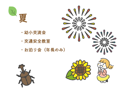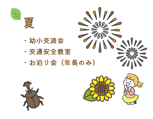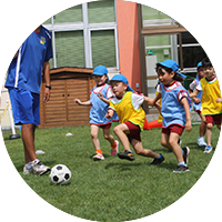 年長のみですが、サッカーを導入しています。技術やルールの習得ではなく、みんなでボールを追いかける楽しさを体験することをモットーに実施しています。SSS札幌サッカースクールのコーチが指導にあたります。