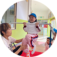 月に一度、体育教室があります。鉄棒・縄跳び・マット・とび箱・ボール等を使った基本的運動を通し、体の顔整力を養います。カワイ体育教室の講師が指導にあたります。